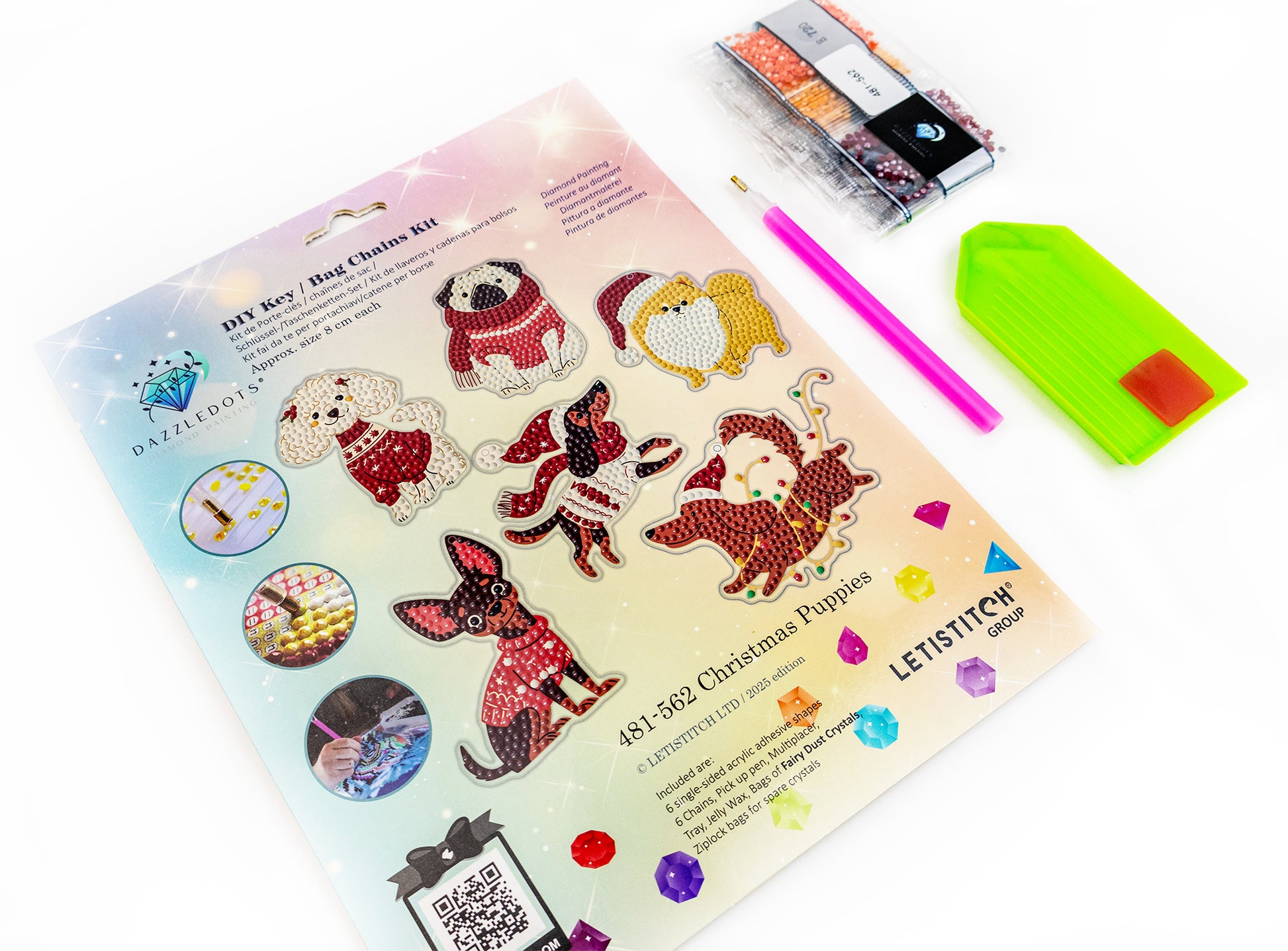 Create cute festive accessories that sparkle all season long with this fun and festive Christmas Puppies diamond keychain kit! ✨🐾