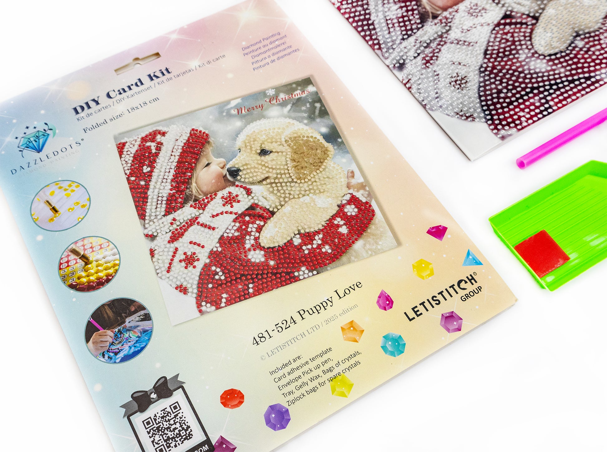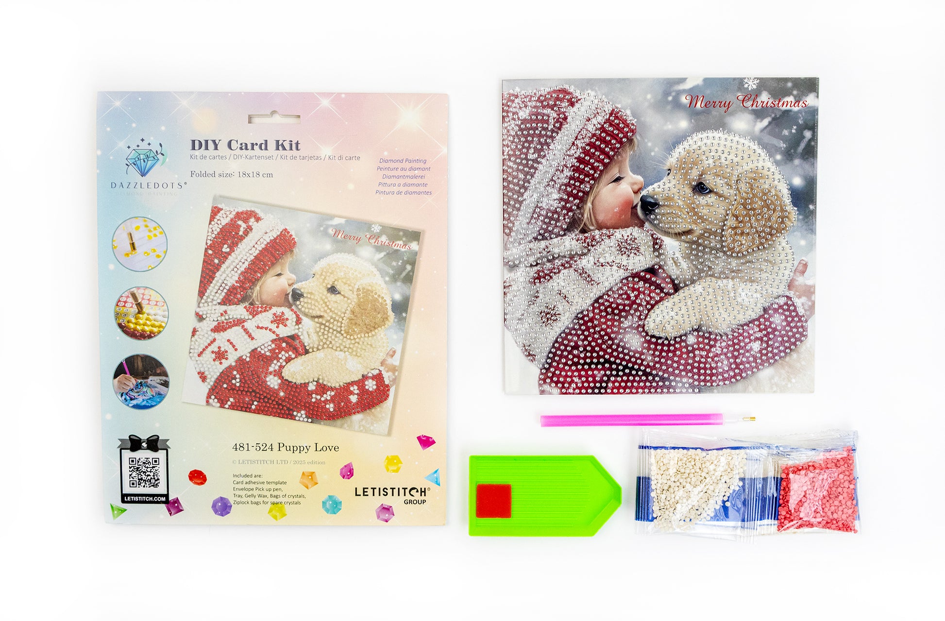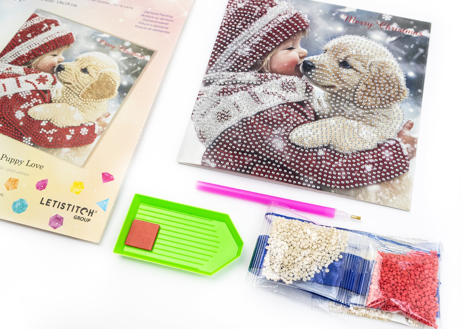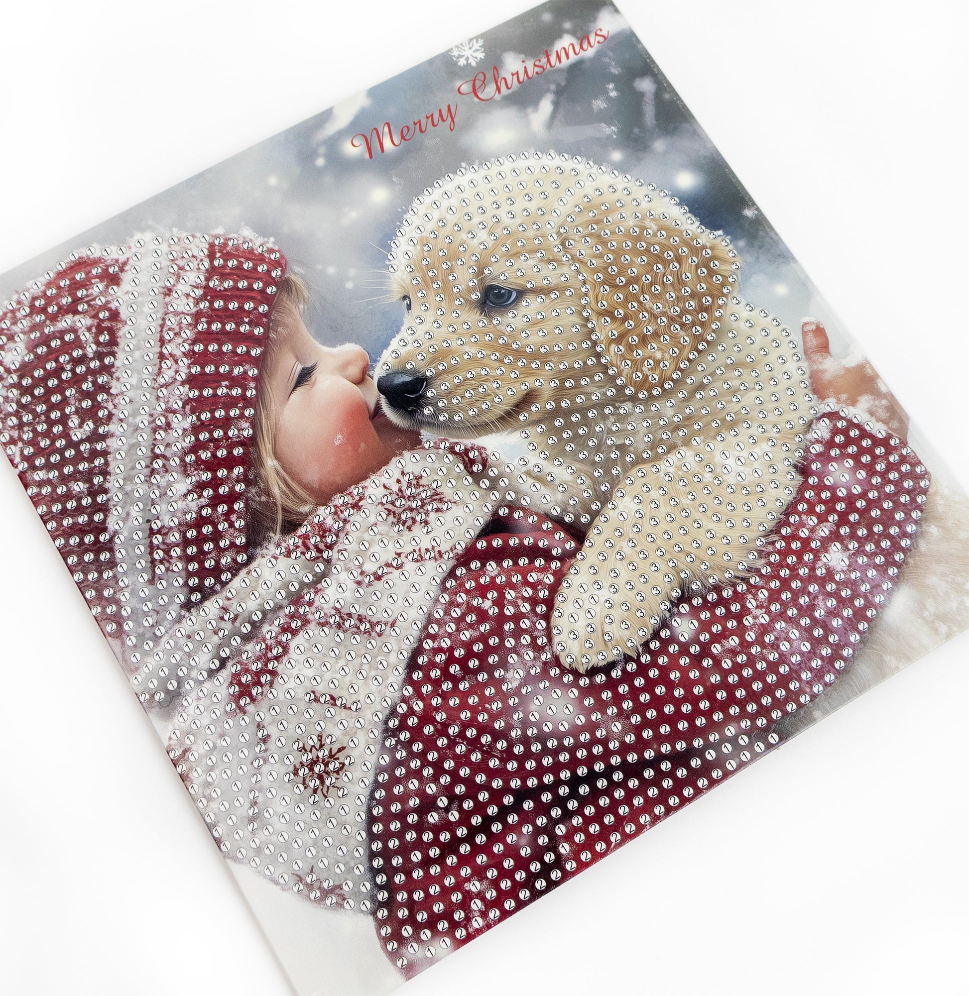 Bring festive charm to life with this adorable Puppy Love diamond painting card.