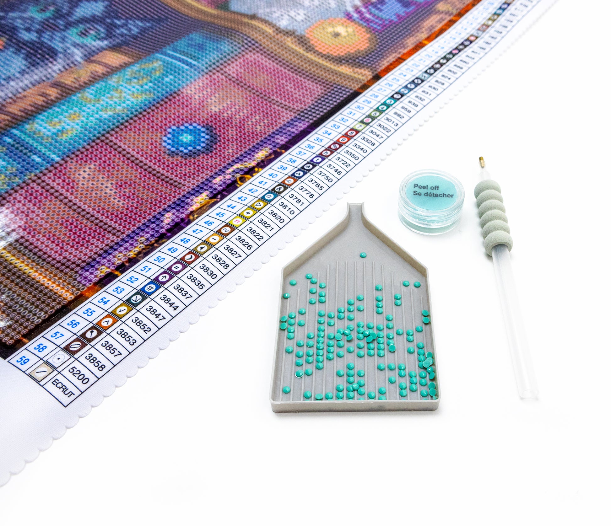 Included: Silk canvas, round acrylic drills, tool kit (pen, tray, jelly wax)