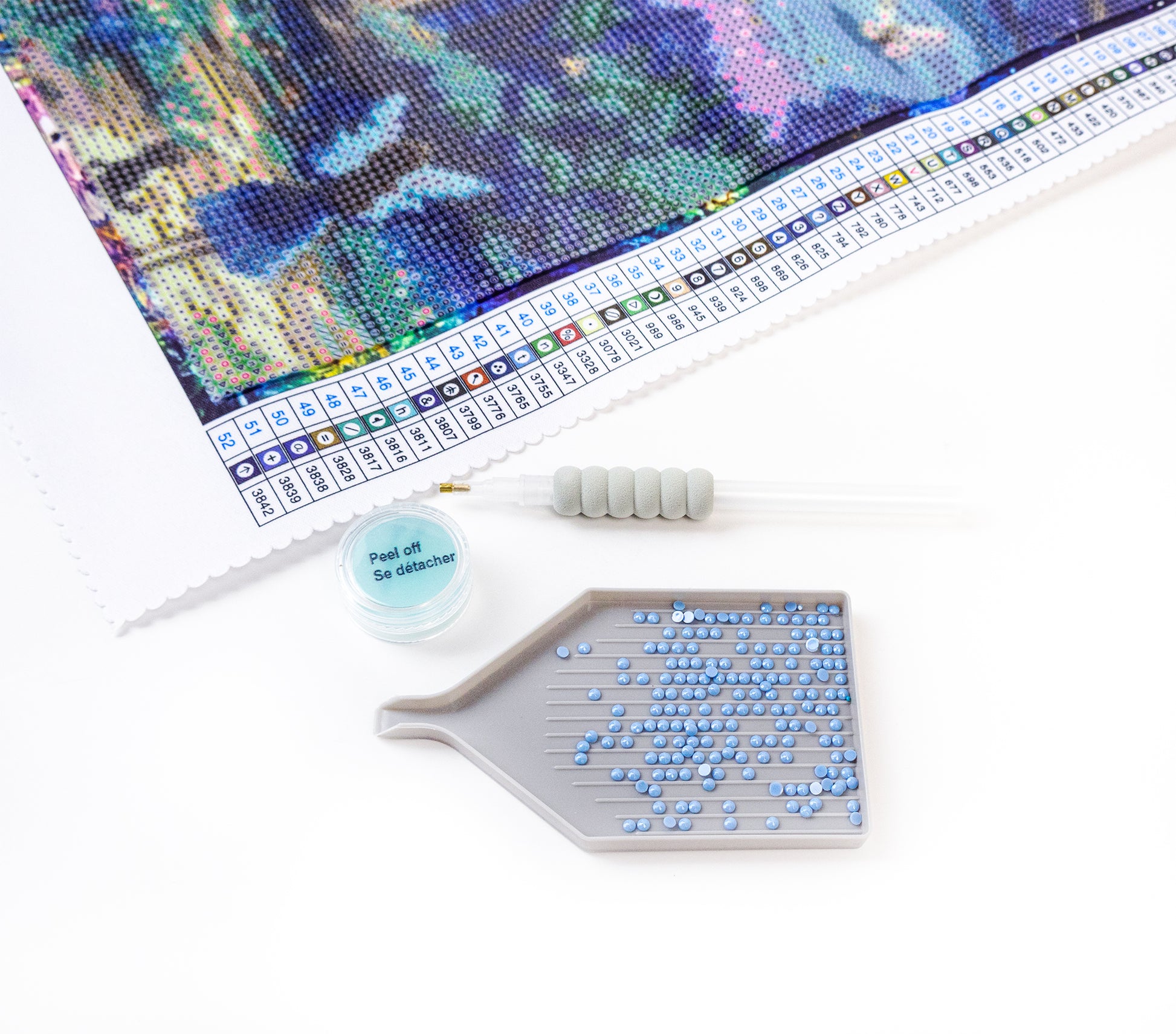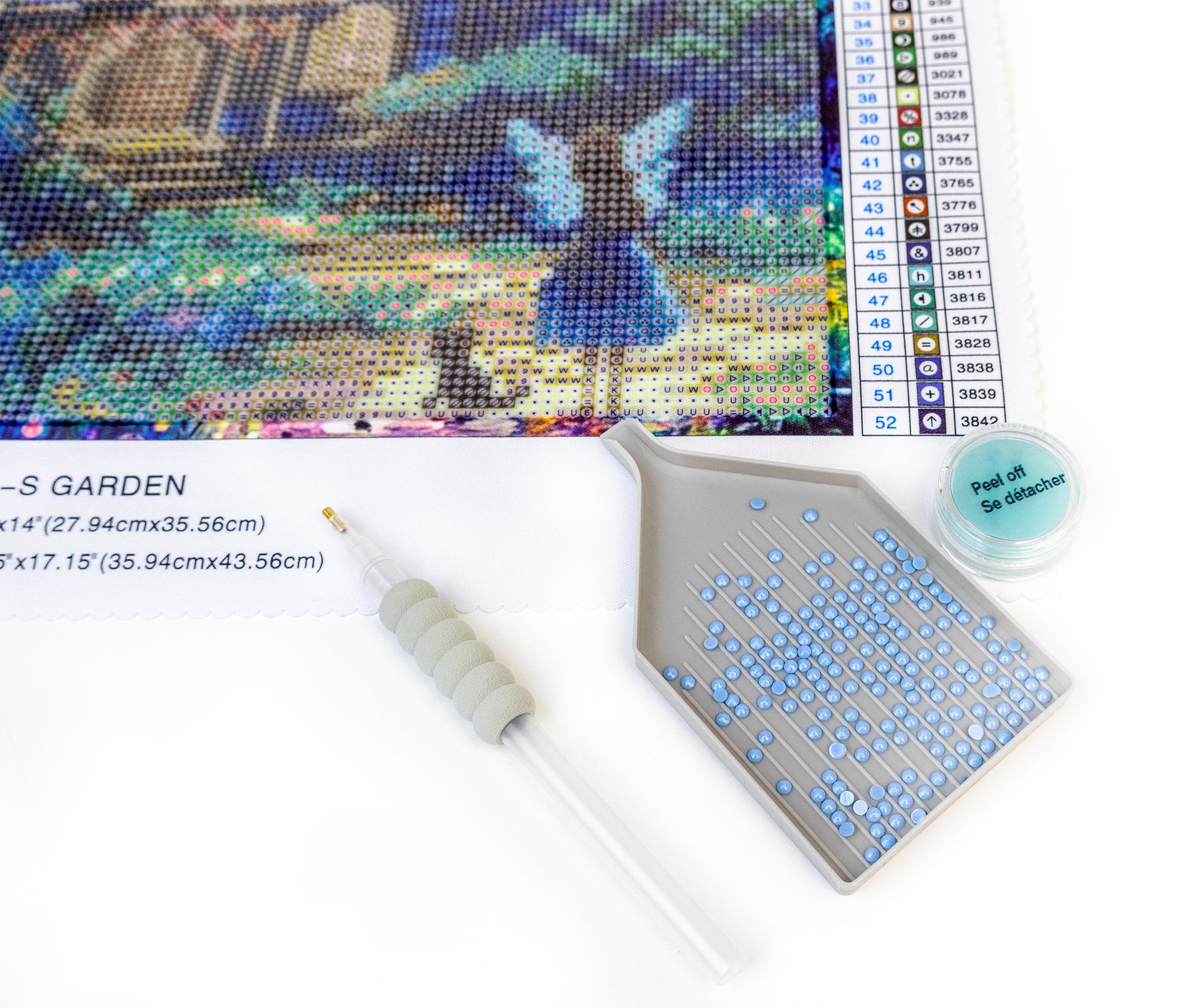 Included: Silk canvas, round acrylic drills, tool kit (pen, tray, jelly wax)